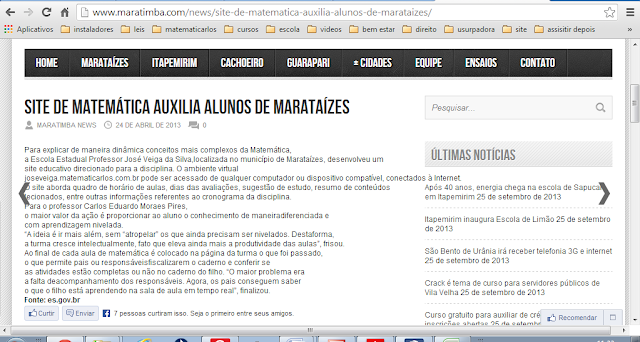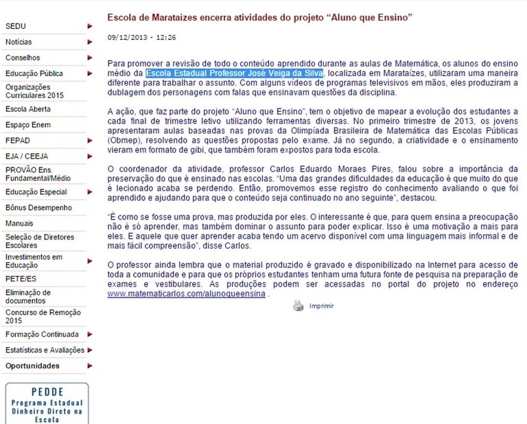 SITE DA SECRETARIA ESTADUAL DE EDUCAÇÃO - ES - 09/12/2013