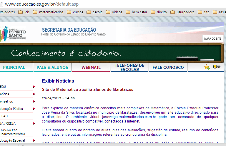 SITE DA SECRETARIA ESTADUAL DE EDUCAÇÃO - ES - 23/04/2013