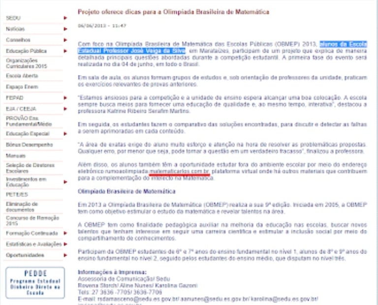SITE DA SECRETARIA ESTADUAL DE EDUCAÇÃO - ES - 06/06/2013